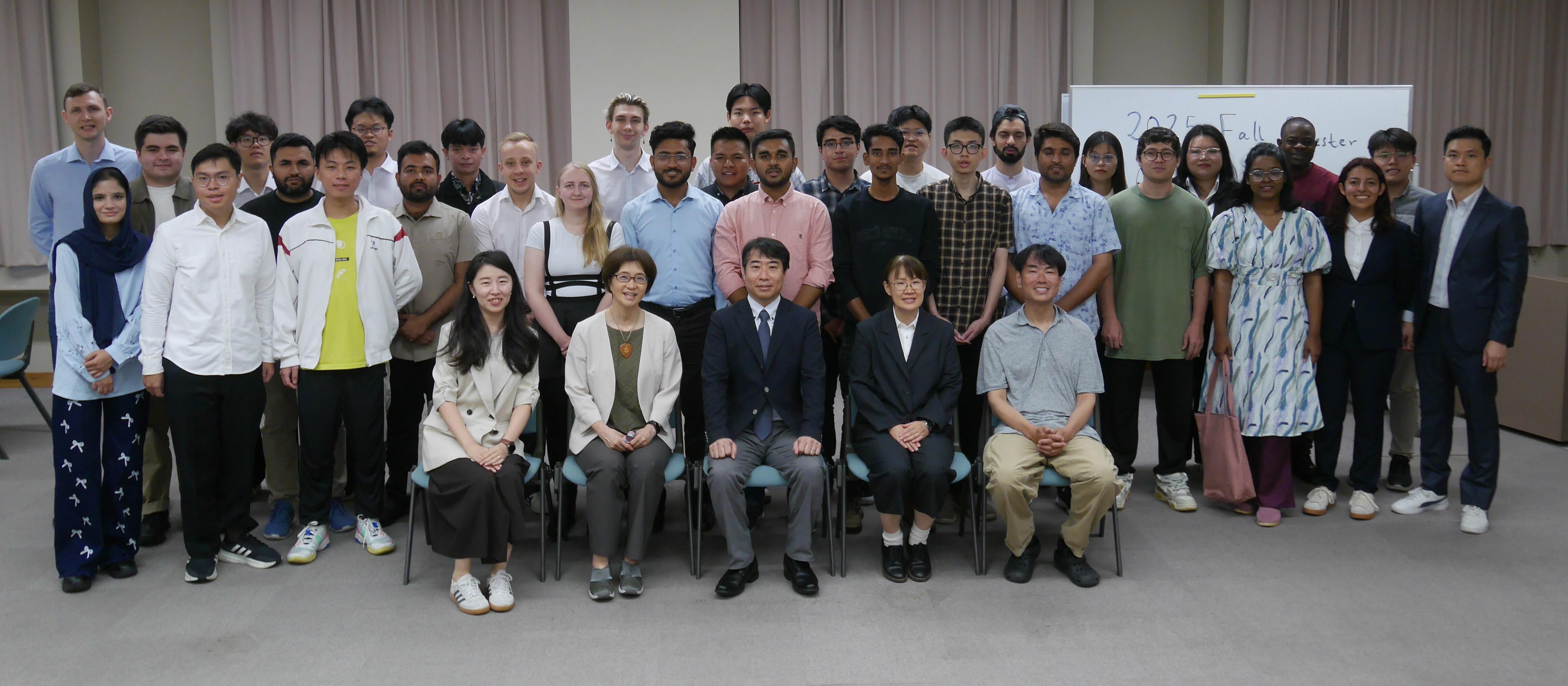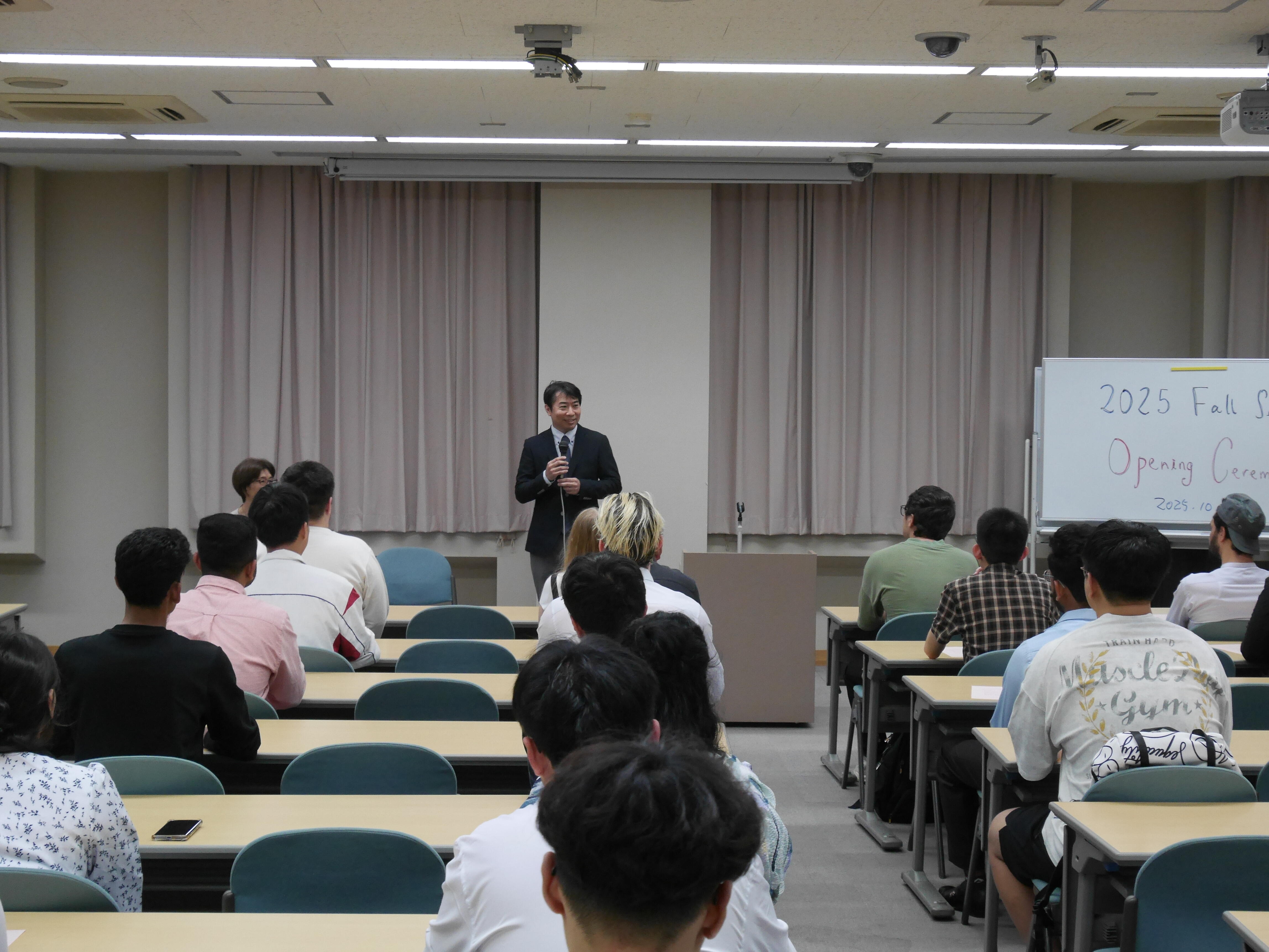 2025年10月6日(月)、国際教育センター主催による秋学期入学式が挙行されました。短期海外留学プログラム生14名、国費留学生19名、計33名(12ヶ国)が新たに本学に入学しました。